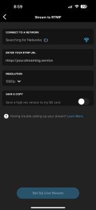 In the GoPro application setup a live stream.